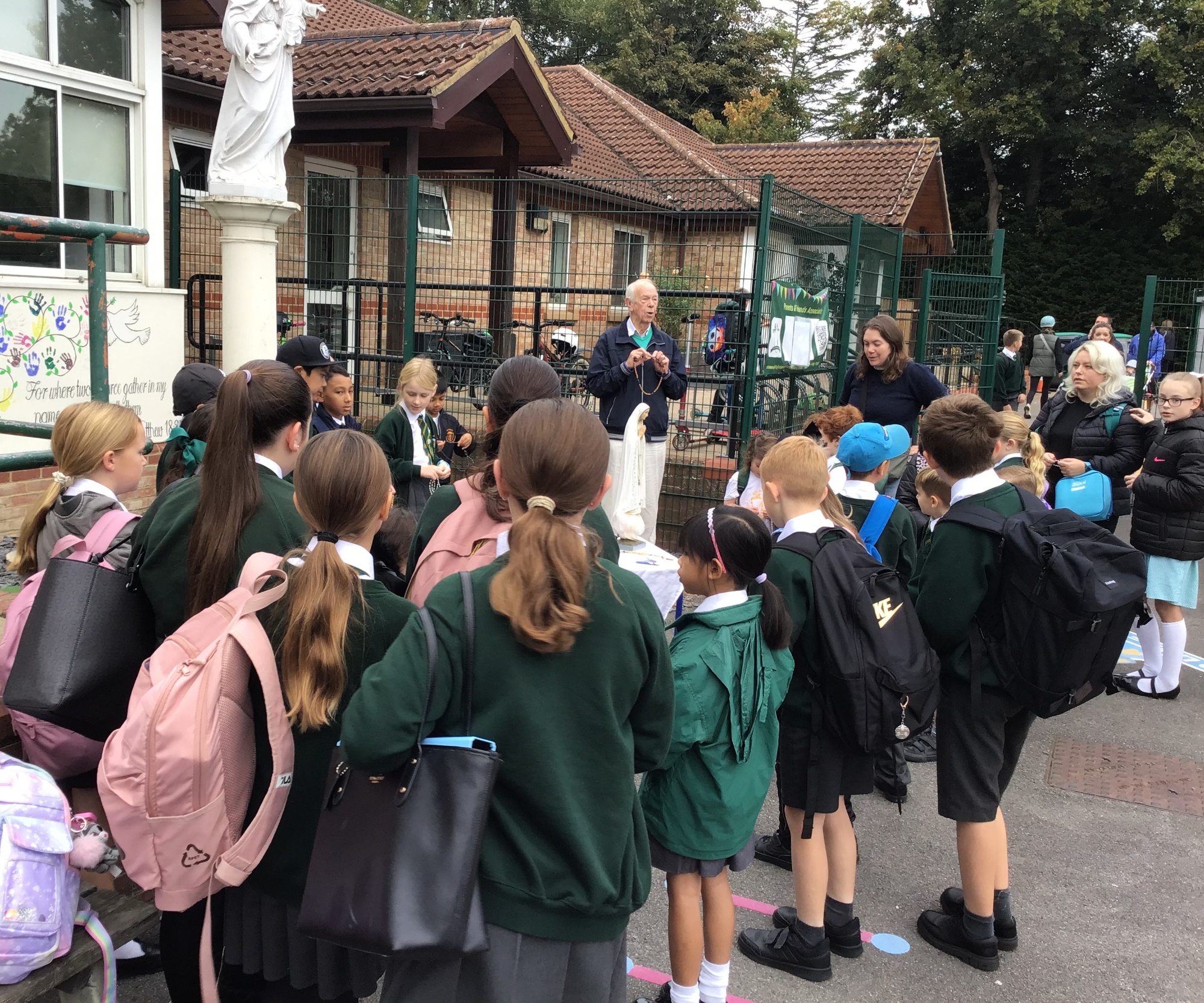 Rosary During the months of May and October, parents and children are invited to say the Rosary before school starts. These are such special times for praying together as a community. Please do join us!